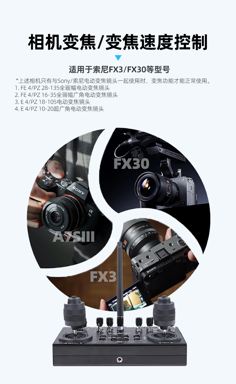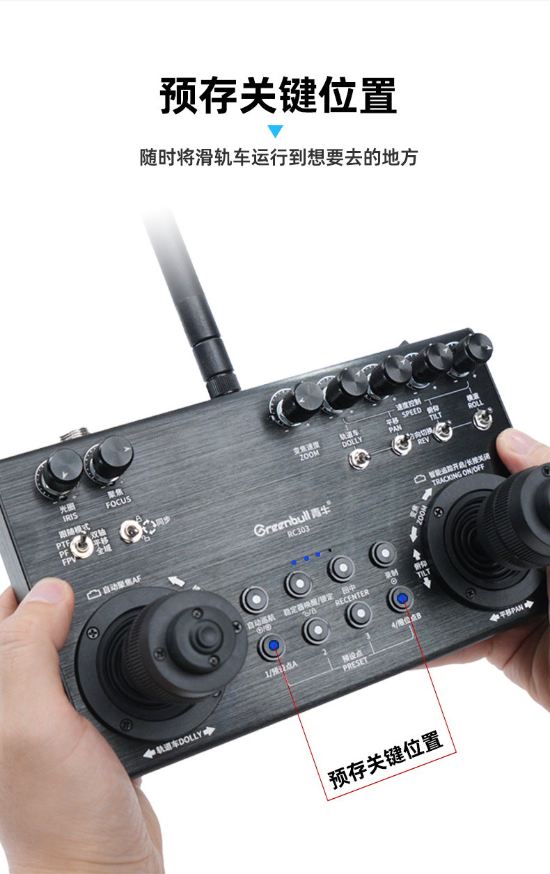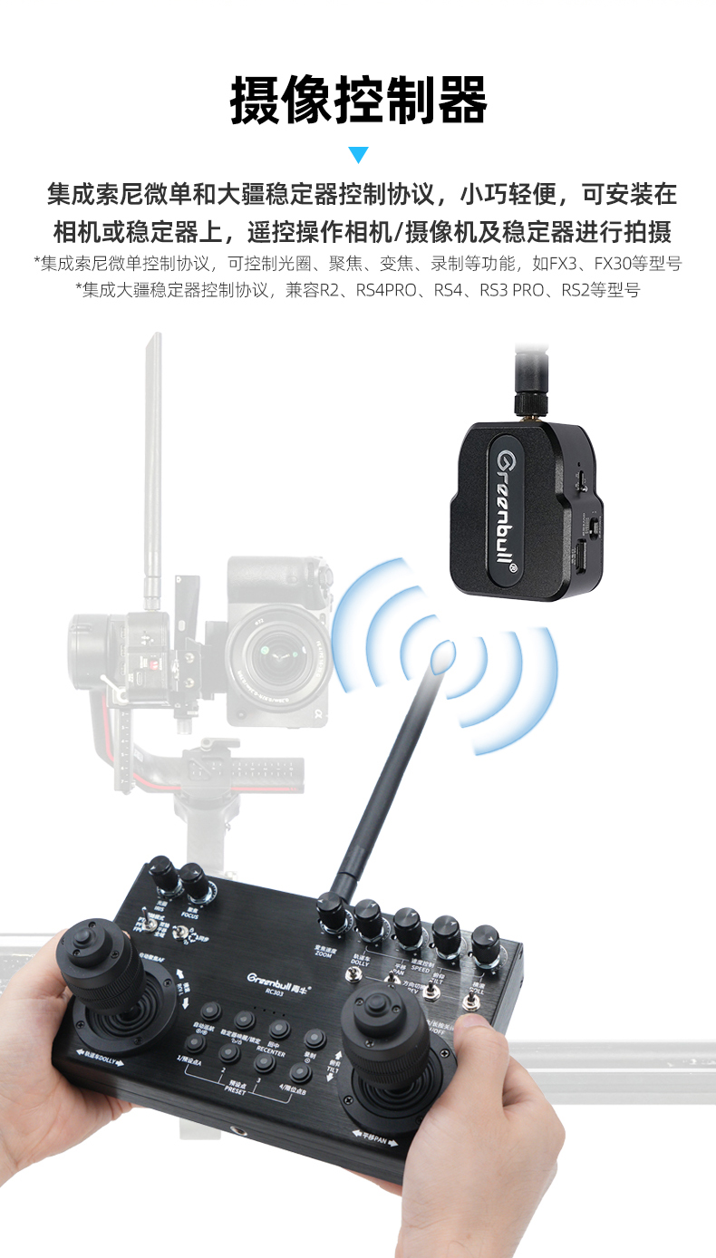 中·英双语遥控器/预存关键位置/Ronin稳定器遥控/DJI跟焦电机控制/AB限位点/相机录制·拍照/电动镜头变焦/摄像机录制·变焦聚焦·光圈/五轴同步巡航/有线·无线