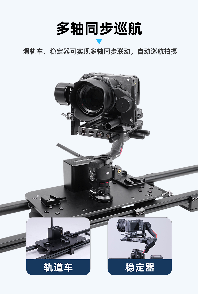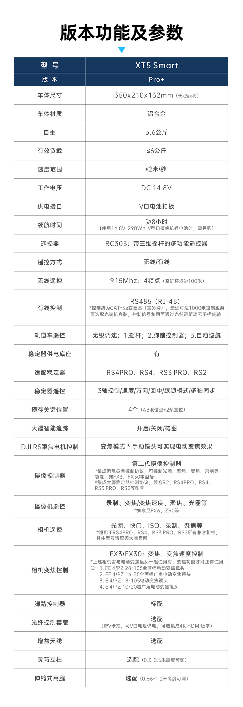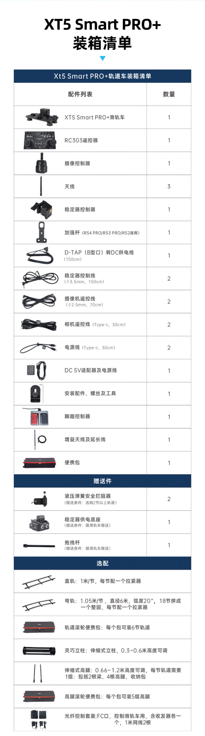 XT5 smart 是一款便携型遥控轨道摄像系统,通过远程遥控滑轨车、大疆稳定器和摄像机/相机来拍摄,具有上手快、好操作、很便携的特色。 广泛应用于活动现场、演艺表演、体育比赛、演唱会、音乐节、综艺真人秀等场景的拍摄。